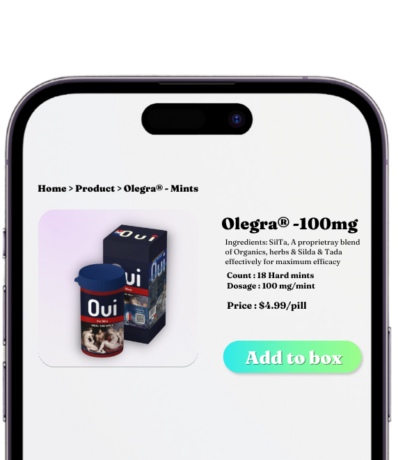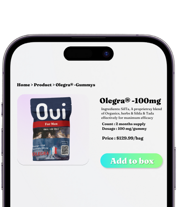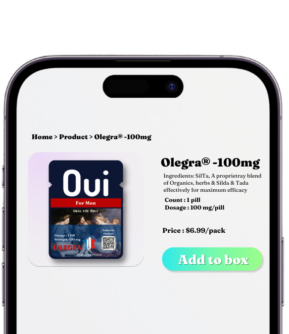 Olegra® is a registered product of Oui® – the Paris, France based brand that specializes in men’s health and beauty solutions. Our fast-acting sex pill is highly effective for various age groups when taken at the right dosage, thanks to its trademark active ingredient SilTa, along with locally sourced French herbs and organic ingredients. Manufactured in France and imported to the US, Olegra is the smart and trendy solution to erectile dysfunction you’ve been searching for