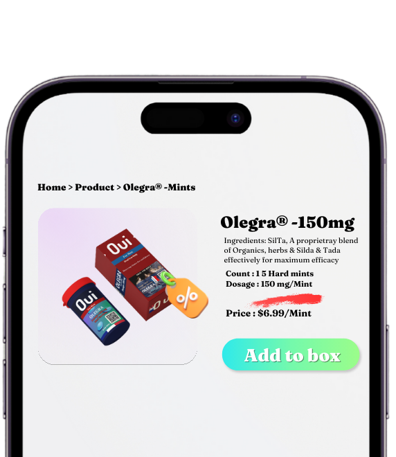 Olegra® -100mg hardmints are chewable, fast-acting, and come with a refreshing breath freshener. They’re not only effective but also trendy and cool, making them the perfect discreet solution for men who want a quick and easy way to enhance their performance.